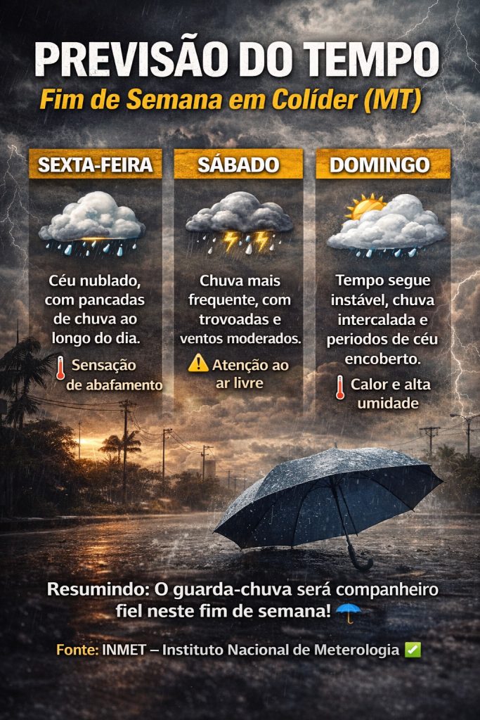 Moradores de Colíder e da região norte de Mato Grosso devem se preparar para um fim de semana com clima instável e chuvas frequentes, de acordo com as previsões meteorológicas mais recentes. 🌧️