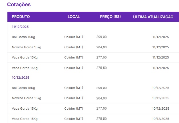 📰 Cotação do Boi Gordo em Colíder‑MT e Região: Preço da Arroba se Mantém Alto no Início de Dezembro
