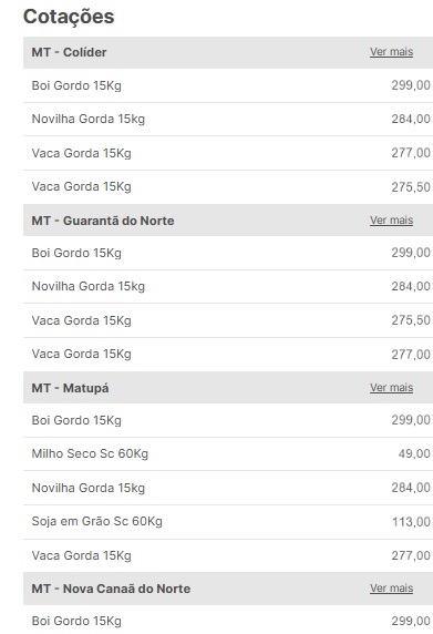 • 📍 Cotação Agrolink para Colíder (tabela reportada): sem valores abertos ao público, mas segue o indicador estadual e regional. Agrolink