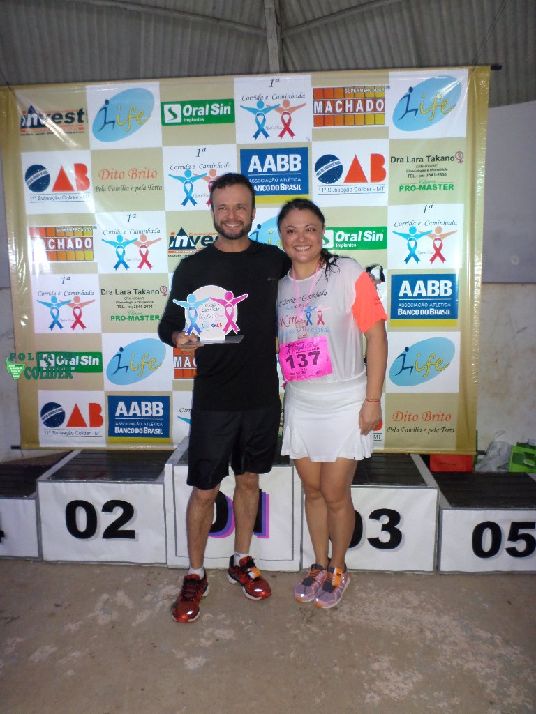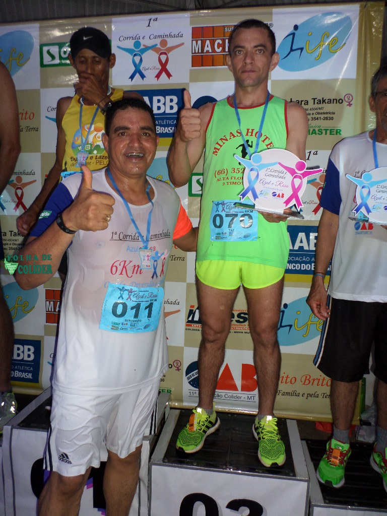 Cento e setenta e cinco inscritos, segundo o professor Agnaldo Pereira,  participaram da grande corrida e caminhada Azul e Rosa ocorrida no anoitecer do sábado (05), com partida da Praça Central de Colider, onde uma grande número de pessoas  se concentrou para prestigiar o evento que tinha como tema: Corrida, Diversão e Saúde, e foi  organizado pela Academia Life, na coordenação do professor Agnaldo Afonso em parceria com a OAB -11ª Subseção, e apoio de diversos empresários e segmentos locais como o Centro de Formação Mirim de Colider. Tendo como principal objetivo  conclamar a comunidade para a importância da prevenção contra o   Câncer de Mama e o  Câncer de Próstata.