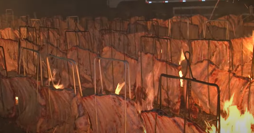 As costelas são mantidas no calor do fogo de lenha por aproximadamente seis horas. Perto de mil voluntários, entre os quais 100 churrasqueiros, participam da ação, considerada a maior produção em escala de costela de chão do Brasil.