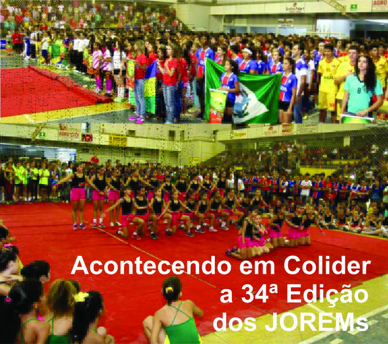 A estréia  do 34º Jogos Regionais Estudantis Mato-grossenses (JOREMs) foi emocionante, os mais de 1.300 atletas lotaram   o CCCE (fraternal) numa linda solenidade no  sábado (31), em ColÃder, com o total de treze delegações das cidades de:  Alta Floresta, Carlinda, Novo Mundo, Paranaita, Nova Bandeirantes, Terra Nova do Norte, Peixoto de Azevedo, Guarantã do Norte, Novo Mundo, Matupá, Nova Guarita,  Apiacás e ColÃder(anfitriã),  sendo recepcionadas por milhares de pessoas entre autoridades  polÃticas, civis, eclesiásticas e populares simpatizantes do esportes  que superlotaram as arquibancadas para prestigiar o evento.