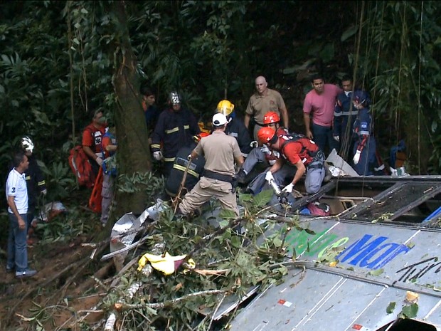 Equipes trabalham desde o fim da tarde de sábado (14) no resgate de feridos. Pelo menos 15 viaturas e ambulâncias foram mobilizadas no local, mas as equipes enfrentaram dificuldades por conta da escuridão e pela falta de sinal de rádio e celular no local.