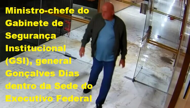 Imagens de câmeras do circuito interno do Palácio do Planalto, divulgadas nesta quarta-feira (19) pela CNN Brasil, mostram o ministro-chefe do Gabinete de Segurança Institucional (GSI), general Gonçalves Dias, dentro da sede do Executivo Federal durante a invasão ao local no dia 8 de janeiro deste ano.
