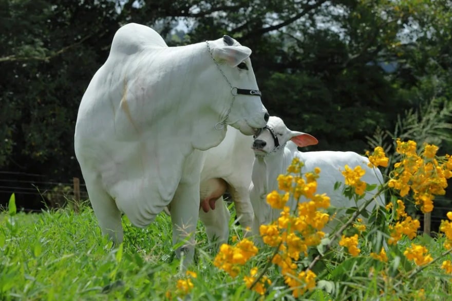 Neste domingo (30), os destaques ficaram por conta dos arremates de três vacas da raça nelore. A vaca Strela FIV do Mura teve 50% leiloados por R$ 2.569.500,00.