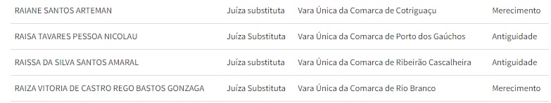 Os outros 24 foram promovidos para Comarcas onde existe apenas uma Vara, com um juiz ou uma juíza.