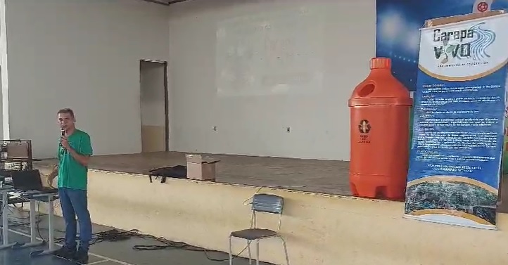 E visando levar subsídios aos alunos para o desenvolvimento desta Prática Pedagógica Viva Carapá, o Presidente da Ong Ambiental Carapá Vivo, Eliel Mota e o Vice-presidente Rinaldo Padilha, ladeado da voluntária Maria Ivone( professora aposentada), se reuniram recentemente em três turnos com aproximadamente 800 alunos, da Escola Pompeu, deixando-os encantados com a riqueza de informação ministrada por Rinaldo Padilha, que além de professor é também pesquisador dos rios da bacia hidrográfica do rio carapá.
