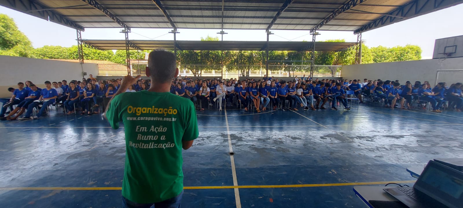 E visando levar subsídios aos alunos para o desenvolvimento desta Prática Pedagógica Viva Carapá, o Presidente da Ong Ambiental Carapá Vivo, Eliel Mota e o Vice-presidente Rinaldo Padilha, ladeado da voluntária Maria Ivone( professora aposentada), se reuniram recentemente em três turnos com aproximadamente 800 alunos, da Escola Pompeu, deixando-os encantados com a riqueza de informação ministrada por Rinaldo Padilha, que além de professor é também pesquisador dos rios da bacia hidrográfica do rio carapá.