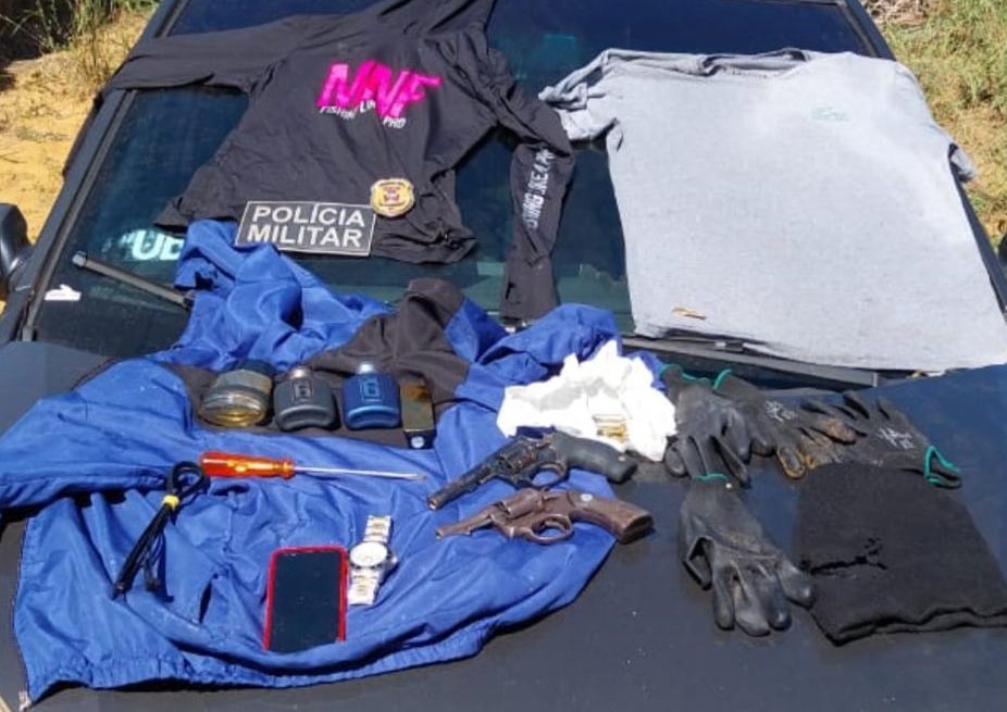 No local em que os suspeitos foram detidos, as equipes encontraram duas armas de fogo tipo revólver, roupas e ferramentas utilizadas para entrar na casa da vítima. Um integrante da quadrilha relatou que outro suspeito seria menor de idade e que havia recém chegado do estado de Goiás.