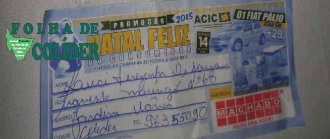 Centenas de pessoas compareceram na Praça Central na noite da quinta-feira(14), para além de prestigiar,  na expectativa de levar para casa um dos trinta prêmios extras e os prêmios principais, como o carro, oferecidos pela Promoção NATAL FELIZ DO CONSUMIDOR/2015, que realizada pela ACIC(Associação Comercial e Industrial de Colider através de seus associados, há 22 anos, fomenta a economia do município, com o incentivo de compra no comércio local,  beneficiando comerciantes e consumidores.