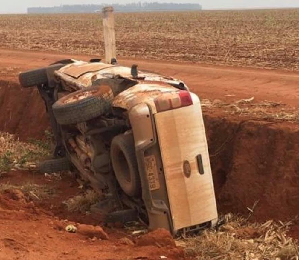Segundo a PM, o veículo, uma Ford Ranger cabine dupla para cinco pessoas, capotou e caiu em uma vala no Assentamento Pingos D’Água.
