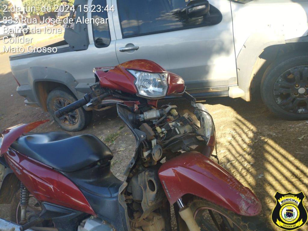 Registrada pela Guarda Municipal de Transito de Colider, a ocorrência diz que com a moto a mulher trafegavan pela rua Bahia, e foi no cruzamento com a rua José de Alencar que ocorreu a trombada com o veículo Fiat Strada, cujo condutor na sua versão disse que, mesmo tentando desviar da Biz, o que o fez bater em outra moto biz estacionada, não pode evitar a colisão.