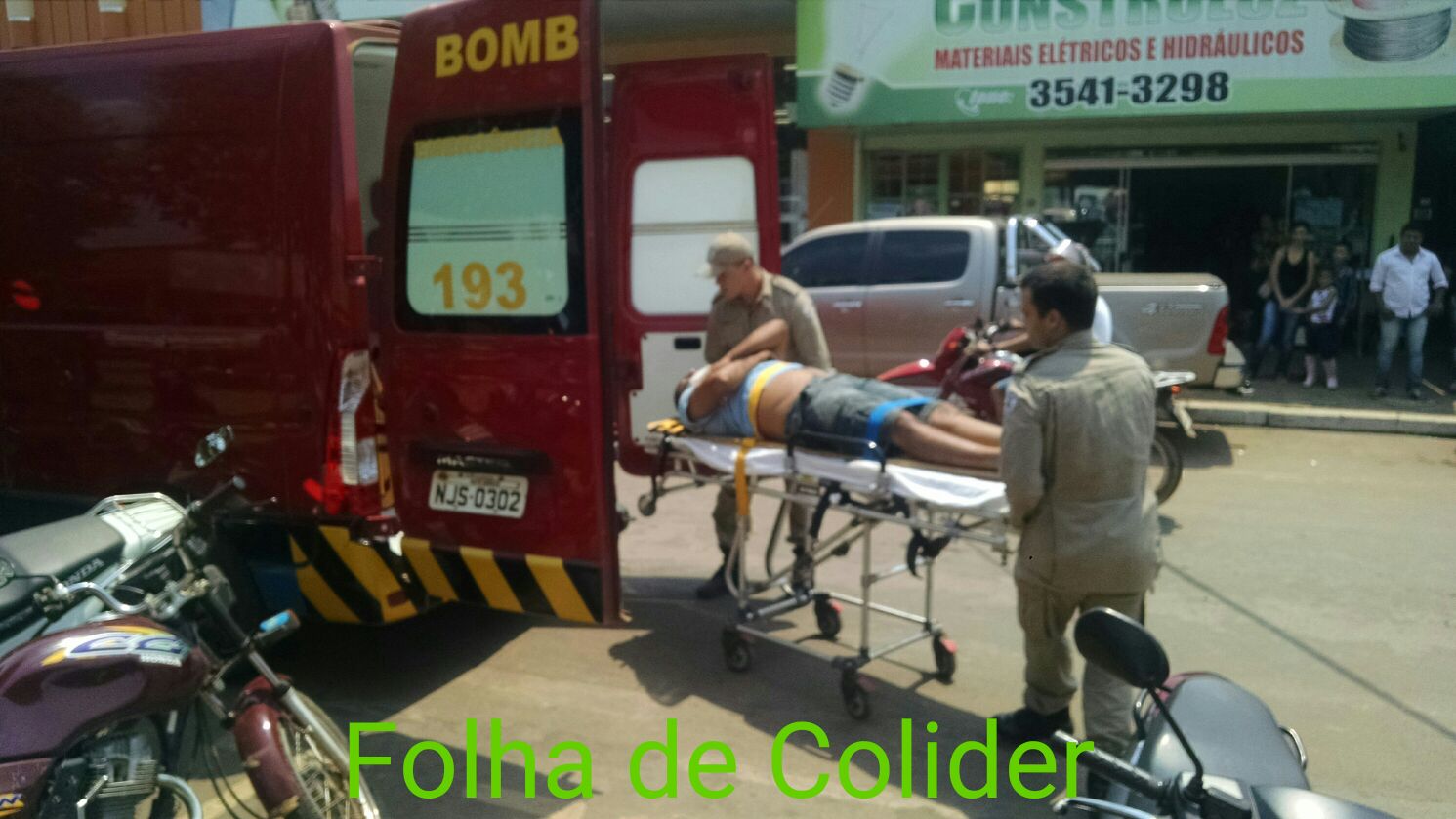 Acionado o Corpo de Bombeiros imediatamente chegou para socorrer a vÃtima, e depois dos procedimentos de socorro o conduziu para o Hospital Regional.  Da Redação Folha de Colider