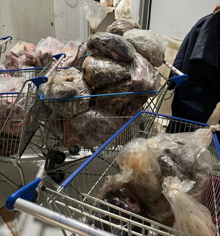 Também foram encontrados diversos produtos com prazo de validade vencido, incluindo carnes, frios e produtos secos, expostos à venda e impróprios para o consumo humano.
