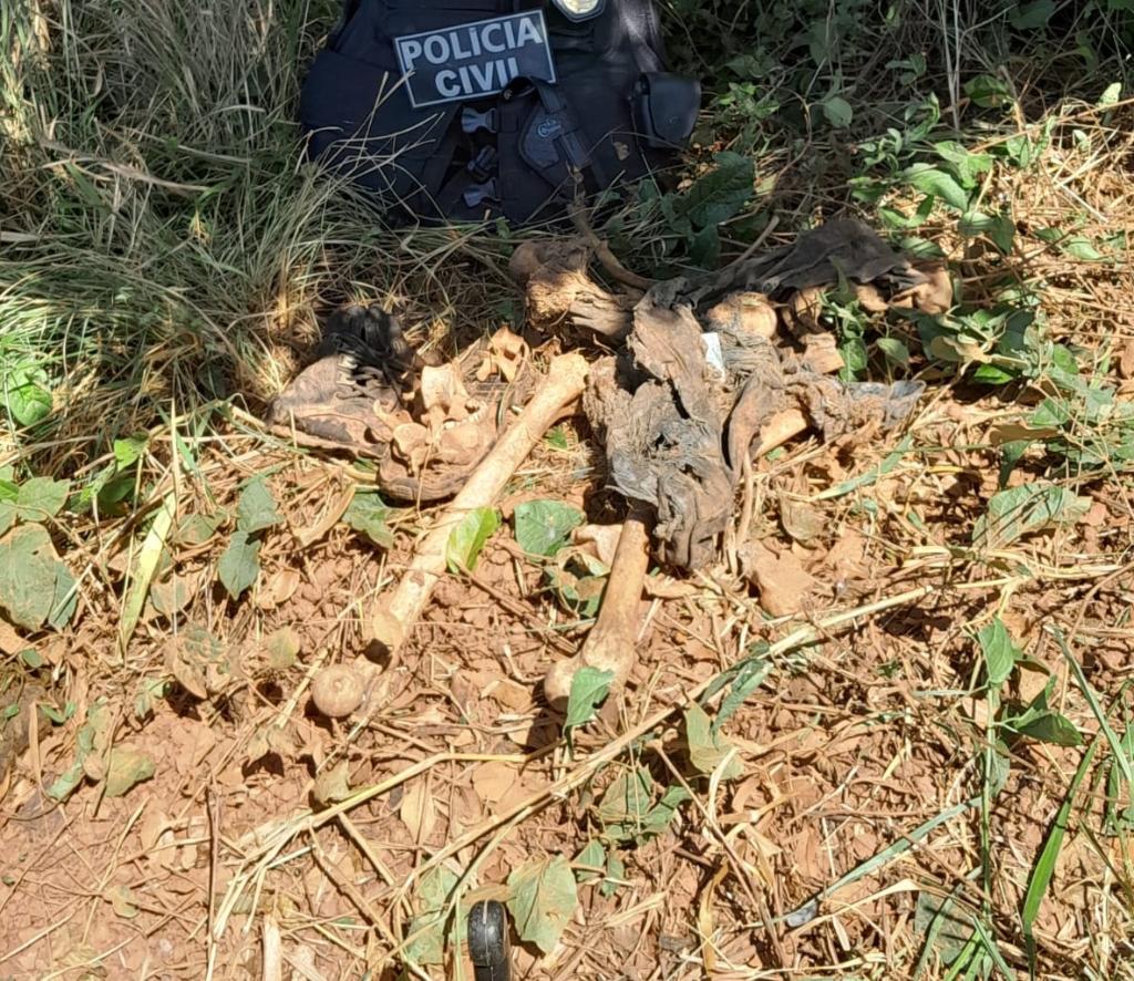 Com as informações sobre a possível localização de onde o corpo foi ocultado, a equipe da Polícia Civil e peritos da Politec seguiram até uma região de chácara, nesta sexta-feira (19.05), onde foram localizados um tênis e uma ossada, enterrada com um saco plástico. O material foi recolhido pela perícia e será analisado para identificação.