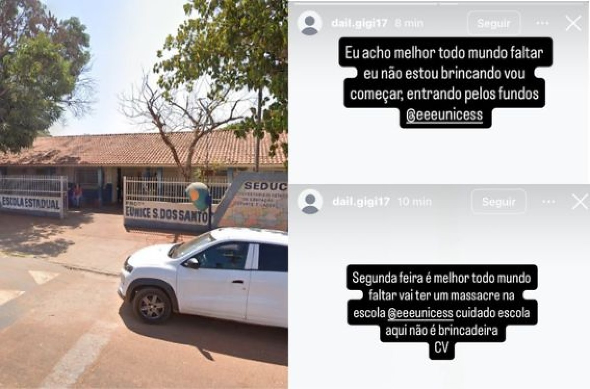 Entre as frases publicadas estavam: “Eu acho melhor todo mundo faltar, eu não estou brincando, vou começar entrando pelos fundos” e “Segunda-feira é melhor todo mundo faltar, vai ter um massacre na escola”. Em uma das mensagens, a autora ainda fez referência à facção criminosa Comando Vermelho (CV) e marcou o perfil da instituição de ensino.