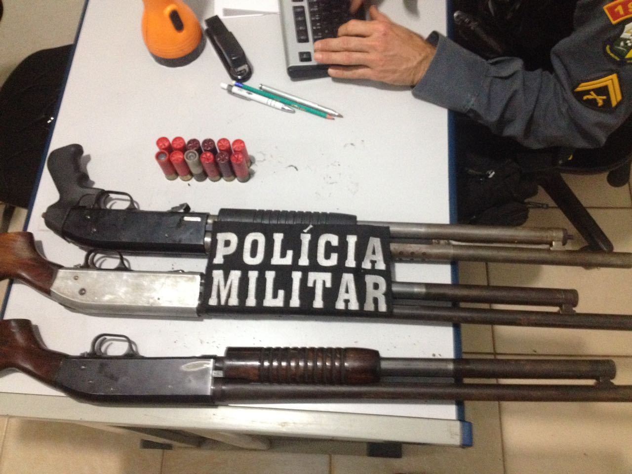 Diante das informações, a guarnição seguiu até a residência do suspeito Brayhan, onde o encontraram. As armas que estavam escondidas, sendo três espingardas de calibre 12, foram apreendidas. Os acusados e todo o material apreendido foram levados ao plantão da Delegacia de PolÃcia Judiciária Civil para as providências cabÃveis.