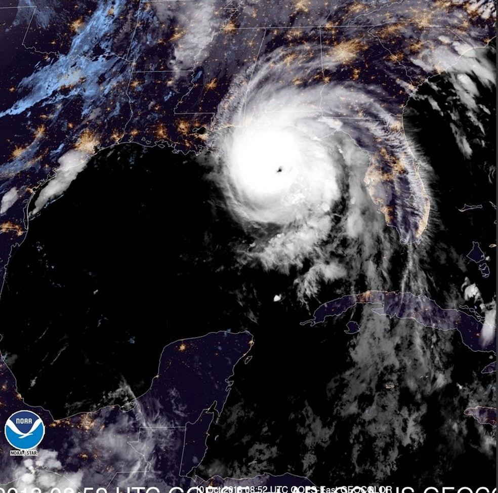 Com ventos máximos constantes de até 210 km/h, o furacão avança pelo Golfo do México a uma velocidade de 19 km/h. Os estados da Flórida, Alabama e da Geórgia declaram estado de emergência.
