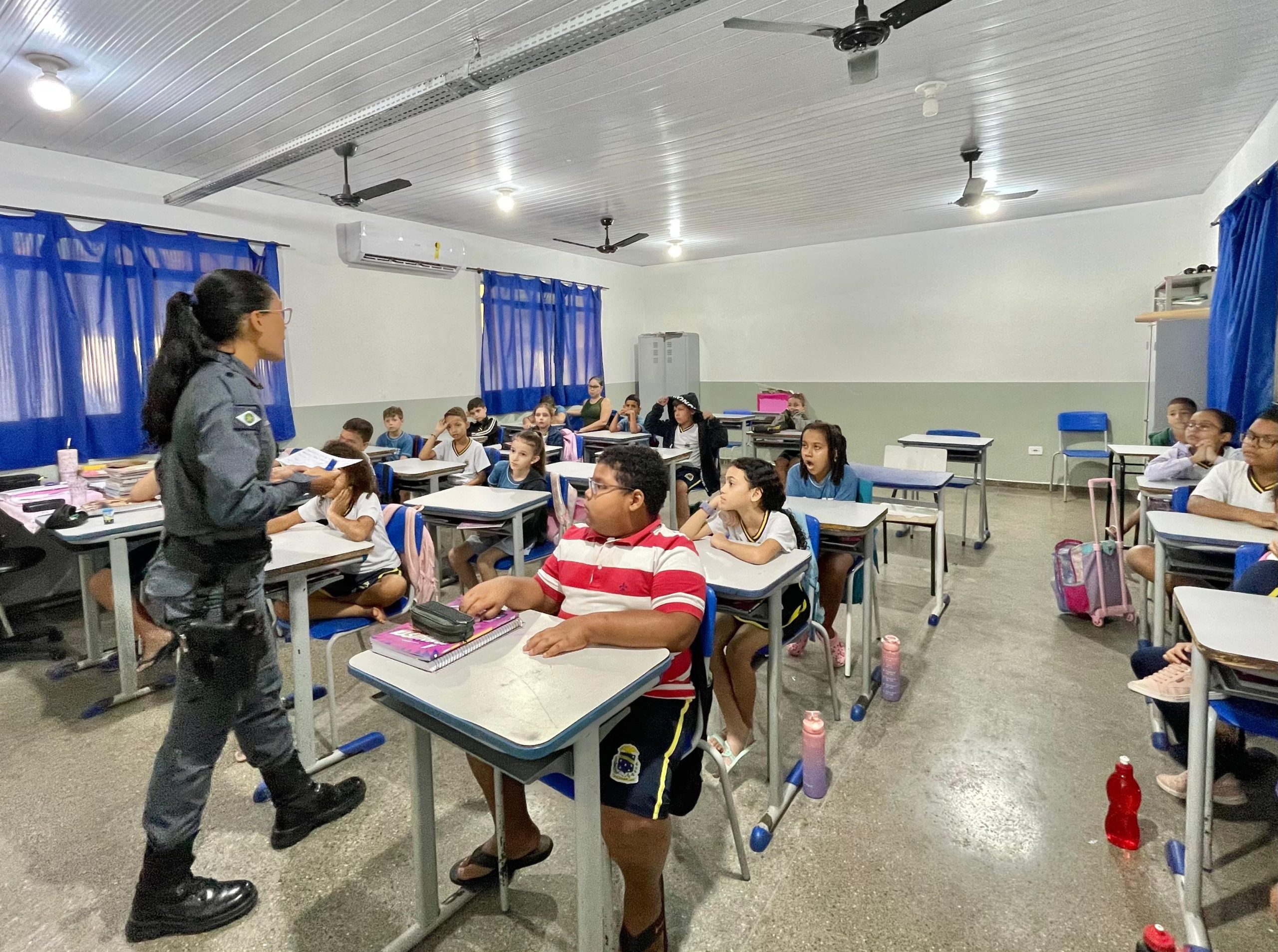 Durante a palestra na Escola Fábio Ribeiro, foram trabalhados temas como segurança pessoal, cidadania, valorização da vida e fortalecimento da cultura da paz, despertando a reflexão dos alunos sobre escolhas seguras e responsáveis.