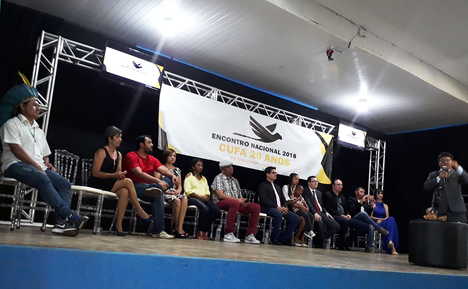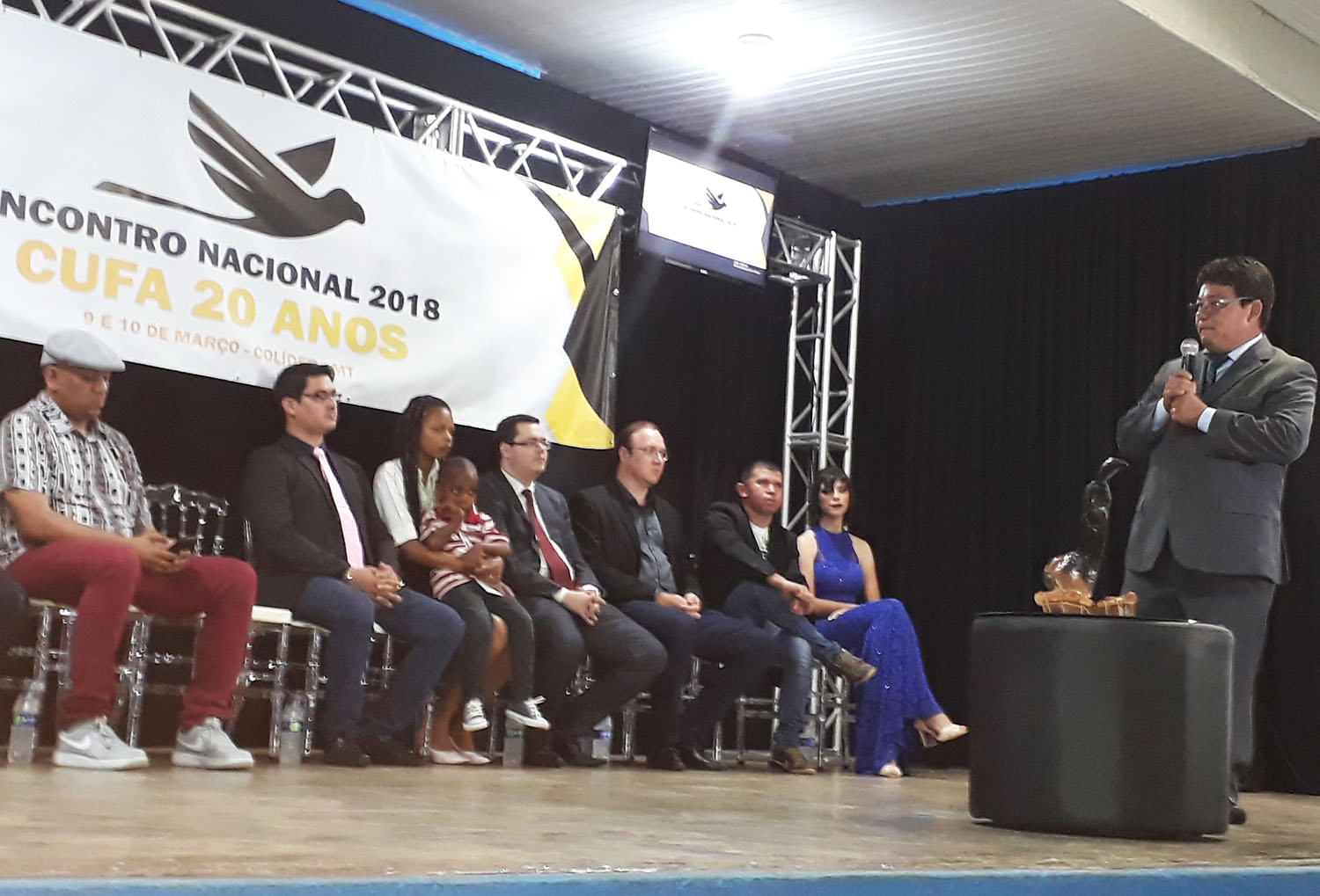 20180310_185333    Colider foi palco de parte muito importante das comemorações dos 20 anos da Central Única das Favelas(CUFA), ao sediar nos dias 09 e 10 de março um grande   Encontro Nacional da CUFA, oportunidade em que  Anderson Zanovello foi  empossado como novo presidente da CUFA Nacional, em cujo evento que deu início com a fala do cearense Francisco José Pereira de Lima( Preto Zezé), presidente Global da CUFA,  falando sobre a entidade, seguido da entrada do Símbolo da instituição, o Anu-Preto, conduzido por Thais e Ângelo e a  formação da mesa pelas seguintes autoridades que prestigiaram o grande acontecimento: Prefeito Municipal de Colider, Noboru Tomiyoshi; o Juiz da Vara do Trabalho, Dr. Mauro Vaz Curvo; Deputado Estadual Alan Cardek, representando o Legislativo Estadual; representando o Legislativo Municipal, a vereadora Dóris Sguizardi; representante da ACIC, Leandro Kessler; Débora Ribeiro, Diretora de Produção da CUFA Colider; representante da CUFA Estado do Mato Grosso Gerlan Melo; Colaborador Júnior Bandeira; Presidente Global da CUFA, Pedro Zézé;  Maria Viana, representando as famílias CUFA do país; Eliel Rondon, Presidente da CUFA Vilena: Elaine, representante da CUFA de Peixoto de Azevedo.