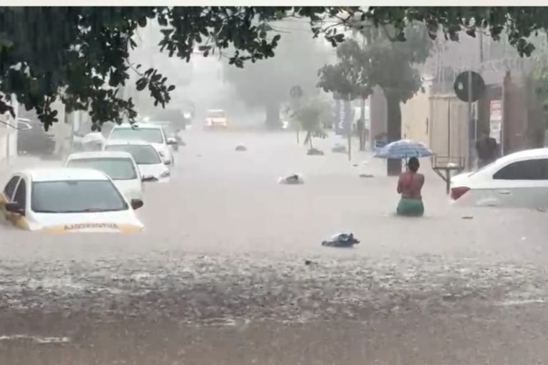 A região central também foi duramente atingida pelo temporal. A Avenida Tenente Coronel Duarte, conhecida como Prainha, registrou alagamento em diversos trechos, com trânsito lento e risco para pedestres.