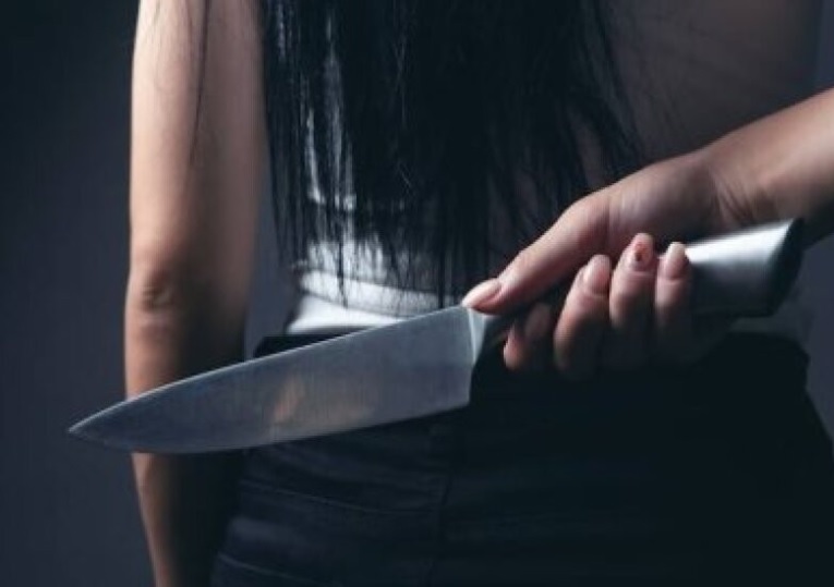 Os militares foram até o endereço e se depararam com a suspeita em uma cadeira, no quintal da residência, com duas facas encostadas no próprio pescoço.