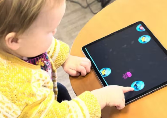 O SenseToKnow, dizem os pesquisadores, incorpora um jogo de estourar bolhas na tela para avaliar movimentos e habilidades motoras, já que atrasos nas habilidades motoras são um dos primeiros sinais de autismo.