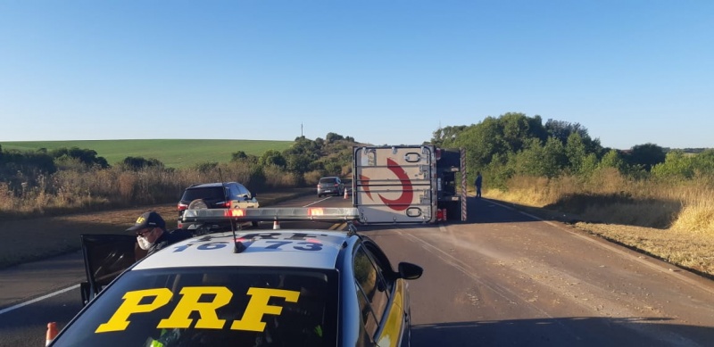 Motorista da carreta que tombou saiu ferido; o outro caminhoneiro fugiu do local, mas foi identificado e já se apresentou à PRF