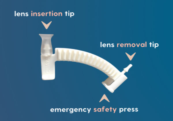 O dispositivo usa ventosas para medir a quantidade precisa de força necessária para inserir e remover as lentes.