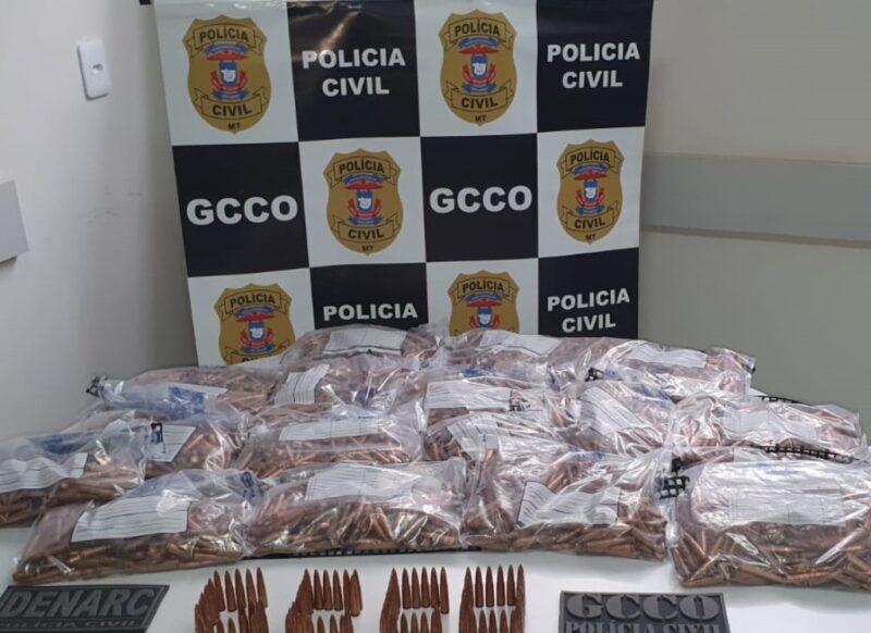 • Equipes das Polícias Civis de Mato Grosso e de Pernambuco apreenderam 3.596 munições para fuzil, de calibre 762, em uma residência em Várzea Grande nesta quarta-feira (25.10), durante cumprimento de ordem judicial da Operação Efeito Helicóptero. Uma mulher de 36 anos foi presa em flagrante pelo crime de posse ilegal de arma ou munição de uso restrito.