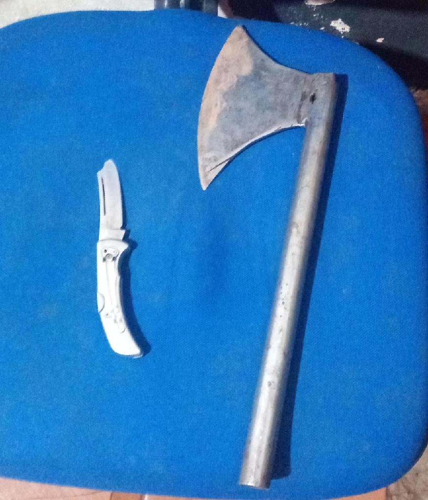 Suspeito estava armado com um canivete e uma machadinha e foi preso em flagrante por lesão corporal