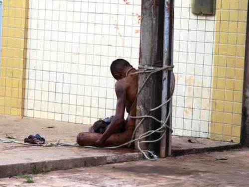 Cleidenilson Pereira da Silva foi linchado por pedestres que o amarraram em poste.                 Cleidenilson Pereira da Silva foi linchado por pedestres que o amarraram em poste. Foto: Biné Morais