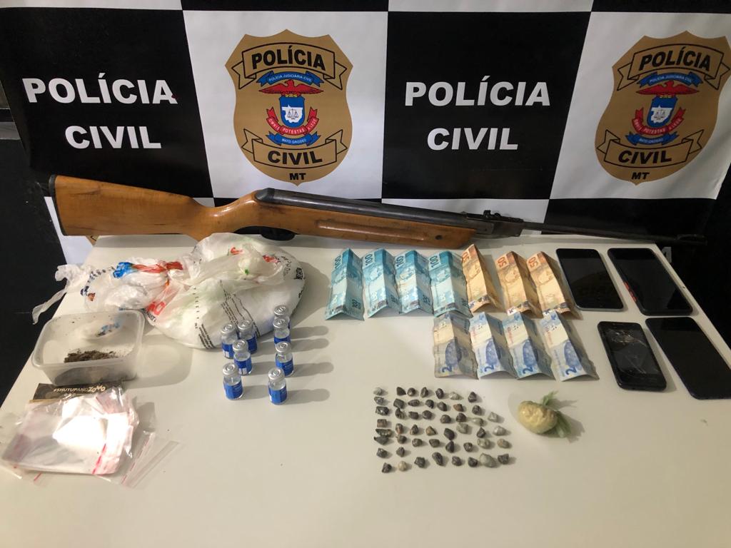 Quatro pessoas na posse de drogas, dinheiro e uma arma de fogo, foram presas pela Polícia Civil, na tarde de sexta-feira (24.09), em Matupá, na operação “Olhos de Águia” deflagrada para cumprimento de um mandado de busca e apreensão, visando desarticular uma associação criminosa.