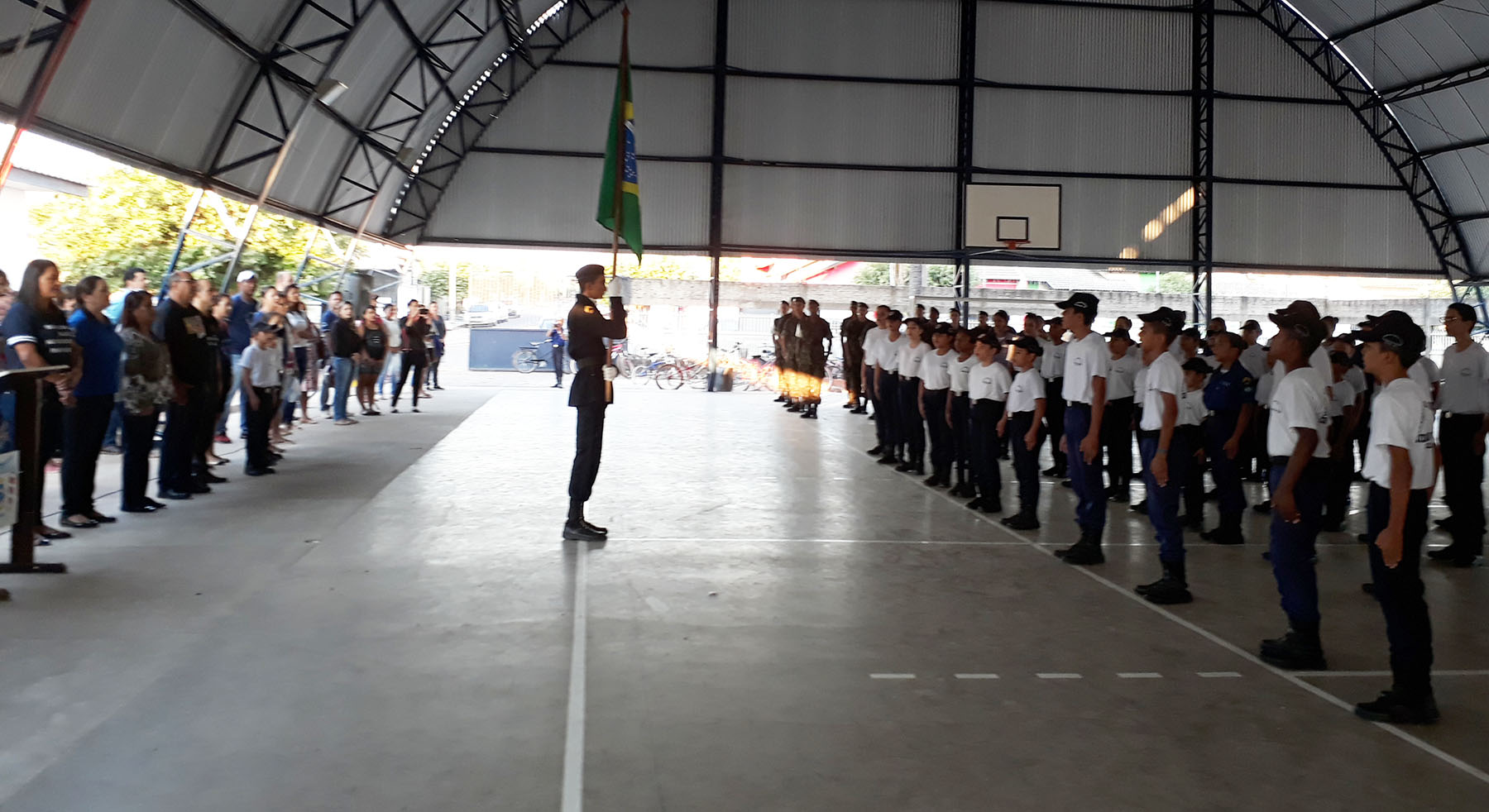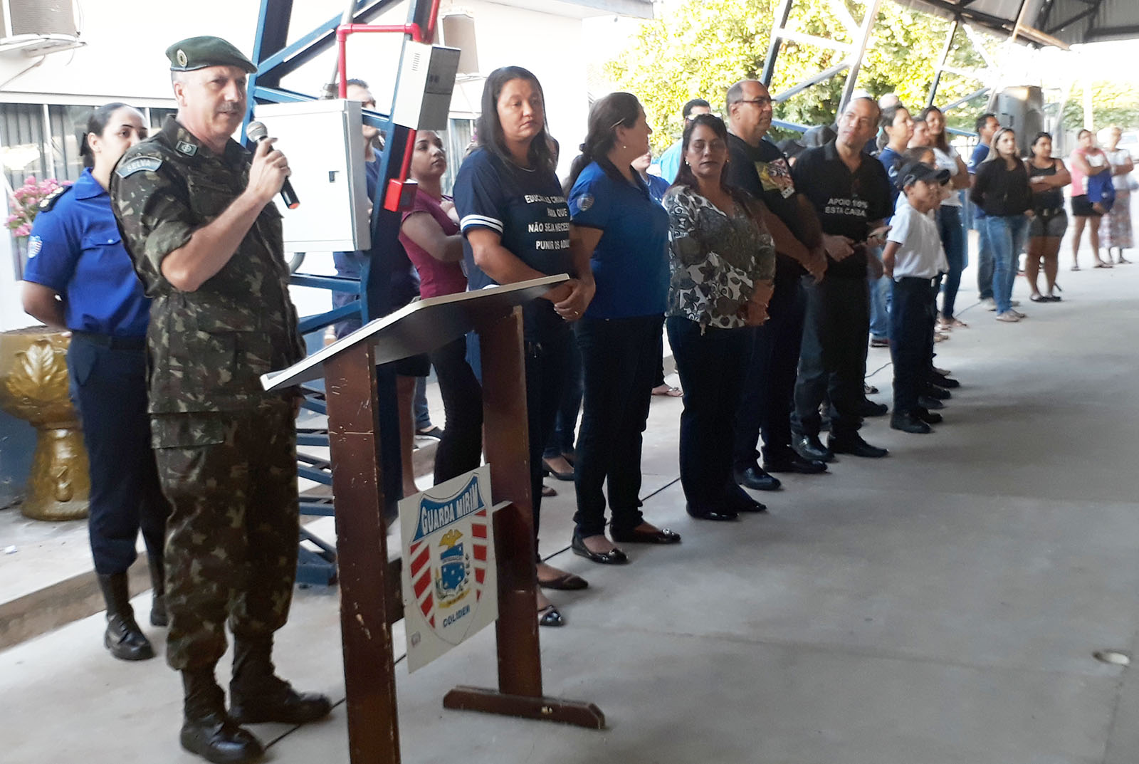 20180901_061716       O evento realizado pela Guarda Mirim, instituição  presidida por Margarida Gaona, contou com Genislei Barretos fazendo o cerimonial, e foi prestigiada por Pais de alunos, Colaboradores, Voluntários, Parceiros, Diretores e as  seguintes autoridades: Sub Tenente R. Martins, do Tiro de Guerra 09/003; 1º tenente Flademir Fogliatto, da 12ª Delegacia de Serviço Militar de Colder; Secretário Municipal de Educação, Márcio Fernandes; Angela Tramarim, representando a Secretaria de Ação Social; Clodoveu Bernardes, representando a Justiça do Trabalho Vara local; vereadora Doris Sguizardi; SGT BM Cavéquia  e André ambos  do Corpo de Bombeiros;  coordenadora  dos Correios local,  Rosali Ana Miranda; ex-vereador João Sguizardi e Assis, ex-presidente GM.