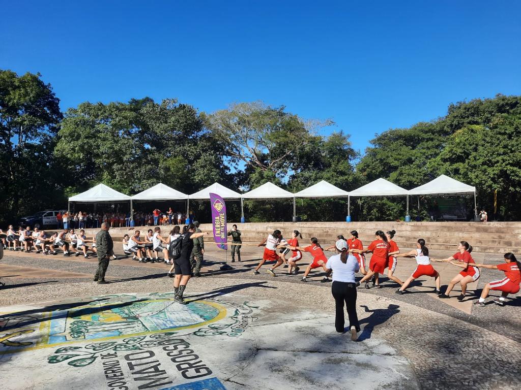 Em comemoração ao Dia Internacional do Meio Ambiente, o Batalhão de Polícia Militar de Proteção Ambiental (BPMPA), promoveu, nesta segunda-feira (05.06), uma gincana entre as escolas militares Tiradentes, da Polícia Militar, e Dom Bosco II, do Corpo de Bombeiros. Ao todo, 120 alunos do 2º e 3º ano competiram no Parque Mãe Bonifácia, em Cuiabá. Entre as brincadeiras, os estudantes disputaram cabo de guerra, queimada e quiz – com torta na cara em caso em erro na resposta.