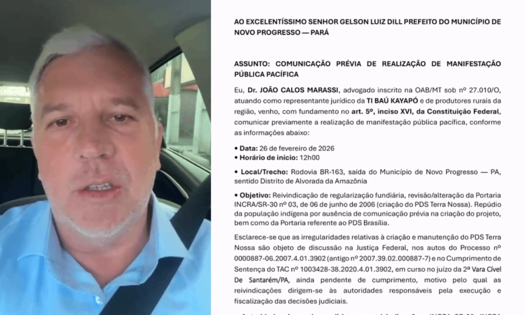 Por sua vez, a Prefeitura de Novo Progresso se manifestou pedindo cautela aos organizadores do movimento. O prefeito solicitou que o bloqueio seja reavaliado, considerando que já há uma reunião oficialmente agendada com o INCRA para o dia 11 de março, quando o tema será debatido diretamente.