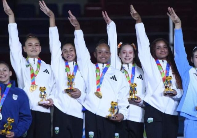 As equipes feminina (foto) e masculina do Brasil conquistaram medalhas de ouro na Ginástica Artística nos Jogos-Olímpicos Juvenis, no Panamá. Foto: @upagpagu