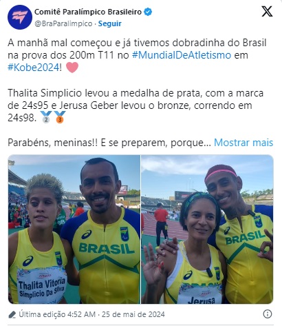 “A gente sai daqui [Kobe] com um sentimento de alegria, uma sensação de dever cumprido. Mas, por outro lado, com sentimento de um baita desafio e de muita expectativa para os Jogos Paralímpicos de Paris, que são o nosso principal objetivo do ciclo. O Campeonato Mundial demonstrou que nós estamos no caminho certo. Muita gente nova chegando por meio de nossos projetos de formação, como a Escola Paralímpica de Esportes, os Centros de Referência e o Camping Escolar Paralímpico. Esse Mundial nos deixa a certeza de que o futuro será ainda melhor que o presente”, avaliou Mizael Conrado, presidente do CPB.