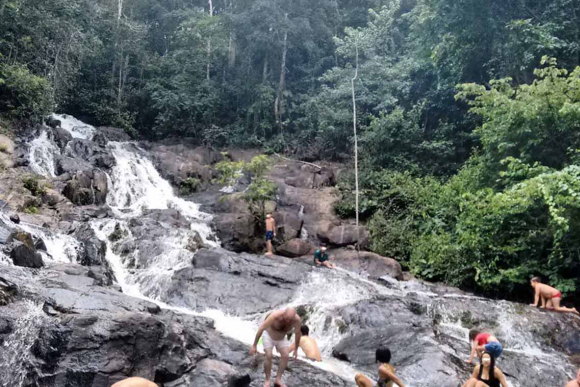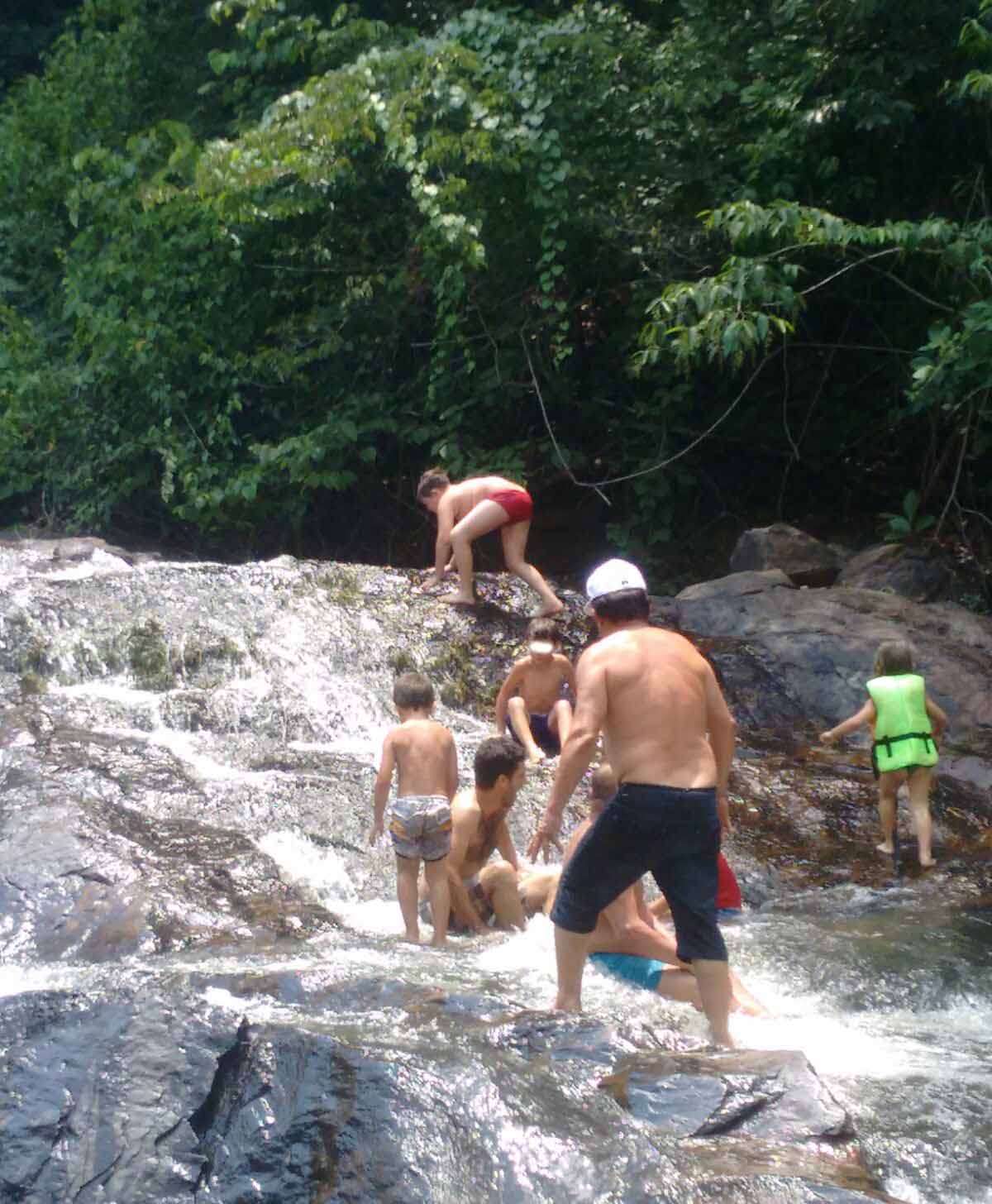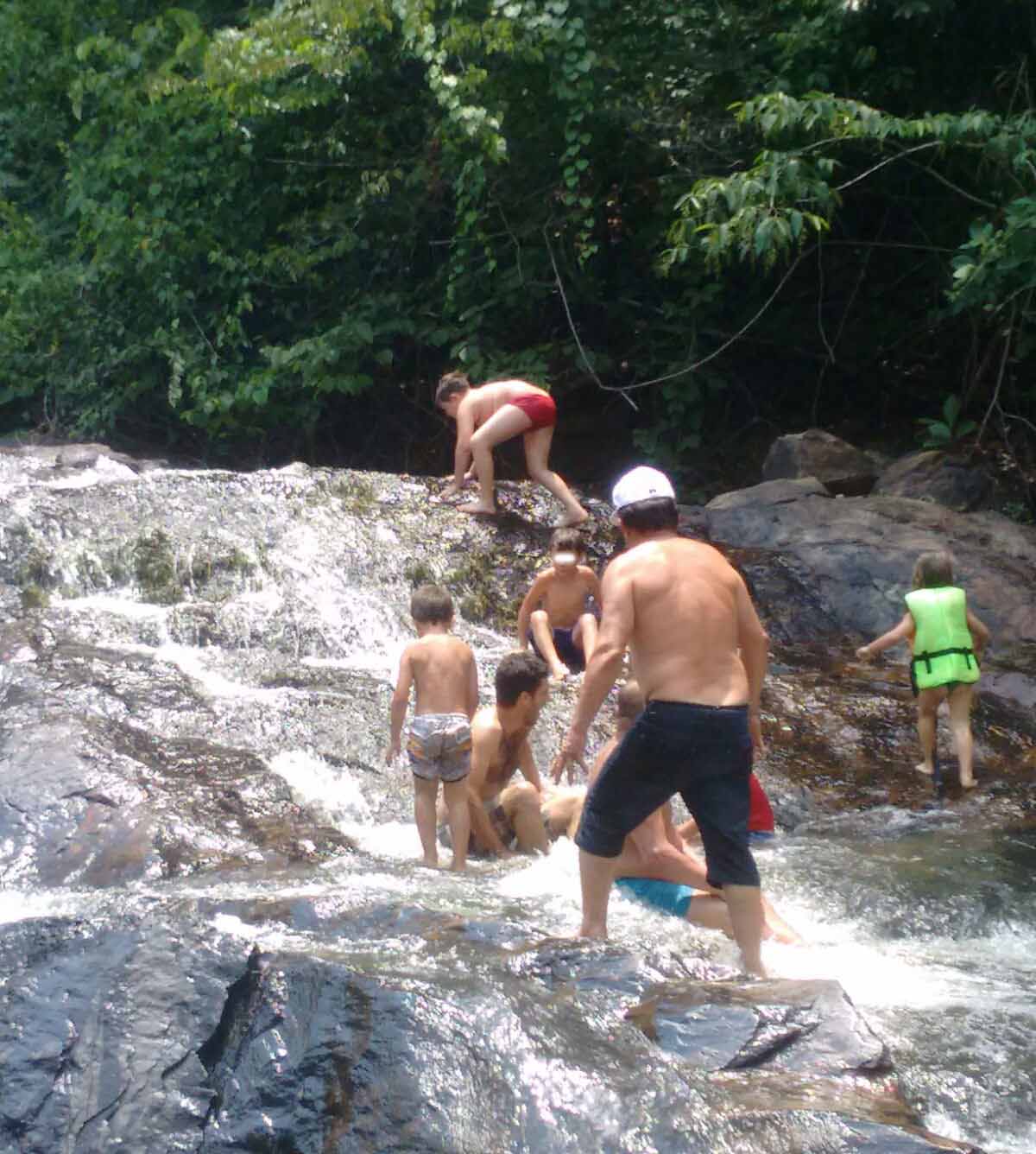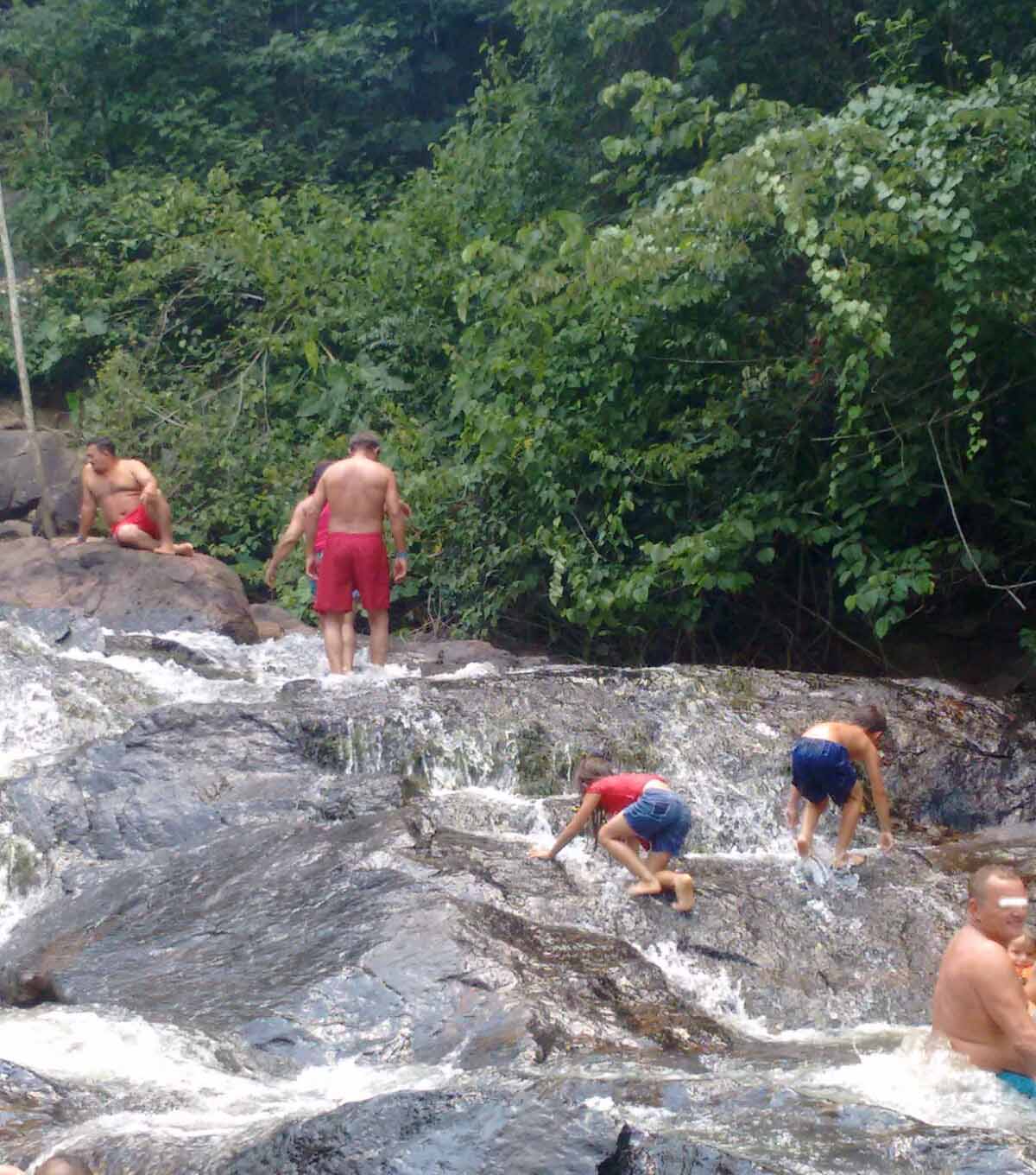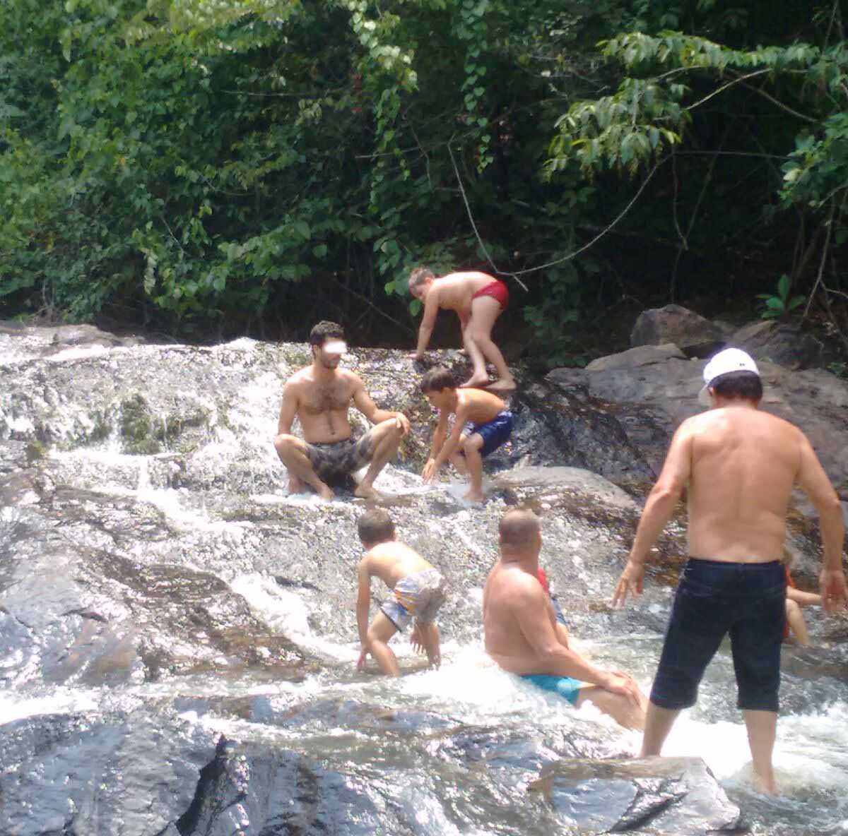 CACHOEIRA MERCÚRIO: crianças escalam paredão de pedras escorregadias