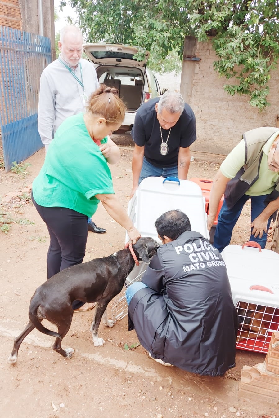 Doze cães em situação de abandono e maus-tratos, foram resgatados durante ação da Polícia Civil, por meio da Delegacia Especializada do Meio Ambiente, em conjunto com a  Secretária Adjunta de Bem-Estar Animal, da Prefeitura de Cuiabá, na sexta-feira (15.09).