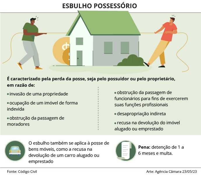 Pela proposta, quem praticar o crime de invasão de domicílio ou de esbulho possessório (ver infográfico abaixo) fica proibido de: