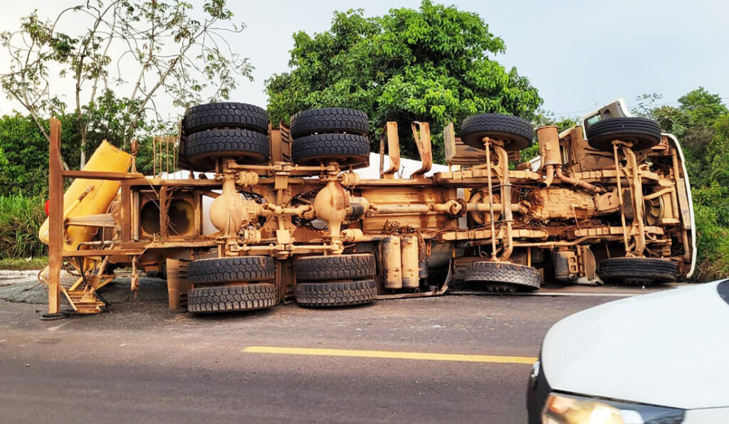 A versão, que está sendo apurada, é que o motorista perdeu a direção enquanto seguia sentido a Sinop e acabou tombando na pista contrária. Parte da carga caiu na pista.