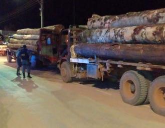 Conforme o boletim de ocorrência, os agentes estavam em ronda pela MT-225 quando perceberam dois caminhões em péssimo estado de uso, sem placa e lâmpadas, além de várias avarias, transportando torras de madeira.