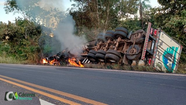 Caminhoneiro, que não teve a identidade revelada, ficou ferido ao perder o controle do veículo, que tombou e pegou fogo na Serra do Cacho, em Cáceres (225 km a oeste de Cuiabá). O acidente aconteceu na tarde desse domingo (1) e a vítima foi socorrida a uma unidade de saúde em Mirassol D’Oeste (300 km a oeste).