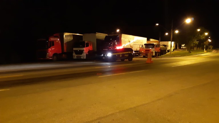Os veículos conduzidos pelos motoristas autuados, permanecerão retidos no pátio da PRF pelo período mínimo de 11 horas, para que os seus condutores possam realizar o devido repouso, sanando a irregularidade detectada pelos agentes de fiscalização.