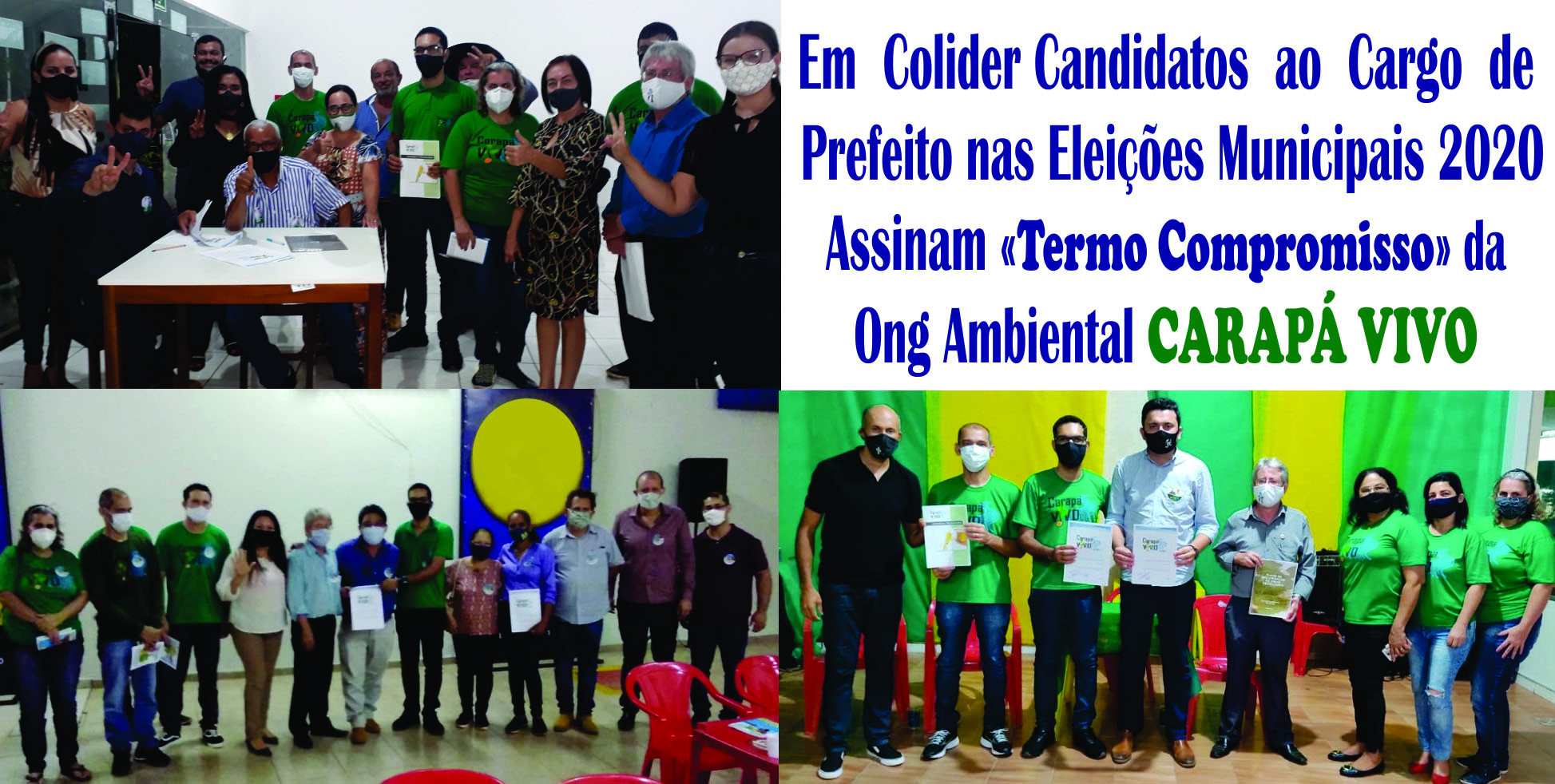Os três candidatos a prefeito acompanhados de candidatos a vereador receberam em seus comitês com atenção e carinho os membros da referida Ong, ocasião em que parabenizaram pela carta afirmando que, parte do proposto está incluído em seus planos de trabalho, tornando evidente que pretende sim desenvolver parcerias com instituições ambientais, sociais e outras verdadeiramente comprometidas com o bem estar dos colidenses e o desenvolvimento do município.         “Eleger prefeito realmente comprometido com a gestão pública do meio ambiente é passo muito importante a ser dado pela comunidade, para a qual Carapá Vivo propõe divulgar anualmente as ações que o candidato eleito desenvolver voltadas ao proposto no “Termo Compromisso” assinado”, salienta o presidente Eliel Motta.