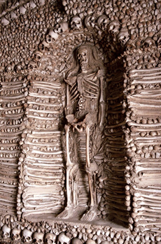 À entrada o olhar perde-se numa inscrição. É um aviso para quem entra, uma lembrança de que tudo passará. No interior, um estreito corredor inquieta, parece ainda mais apertado do que à entrada. Há centenas de crânios a encher a sala. Uns empilhados, outros a fazer de colunas, de abóbadas, de muralhas. Há ossos de crianças, adultos e duas múmias retorcidas. Contemplam os vivos e aguardam-nos, dizendo que um dia também eles serão pó.
