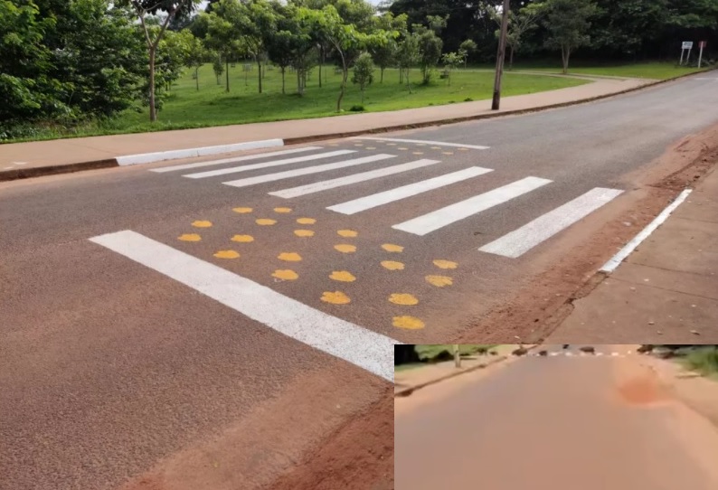 Prefeitura de Juína implantou faixa para evitar atropelamentos dos animais. Um vídeo que está circulando nas redes sociais mostra uma família de capivaras atravessando na faixa.