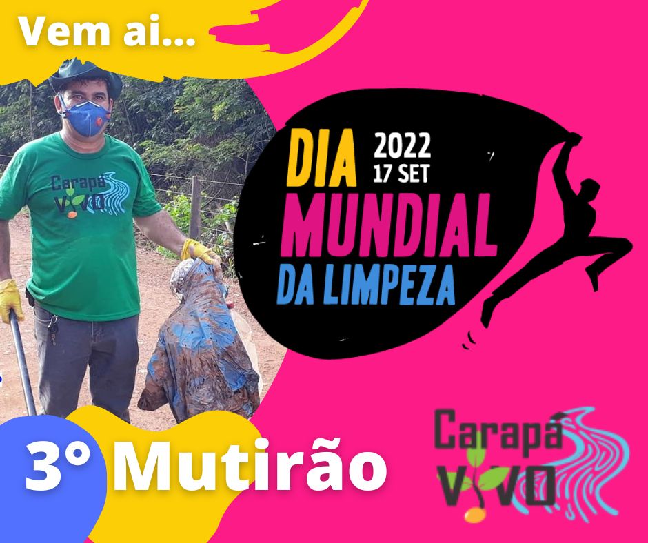 Alusivo ao Dia Mundial da Limpeza, movimento cívico que une em uma única data, 17 de setembro,  191 países e milhões de pessoas em todo mundo com vistas voltadas à limpeza do Planeta, a Ong Ambiental Carapá Vivo estará realizando neste dia  a 3ª edição do “Mutirão de Limpeza”, ação essa fazendo parte do Programa de Combate ao Lixo na Bacia do Rio Carapa, desta vez beneficiando o rio Jaracatiá, rio afluente do rio Carapá, em cujas margens famílias pioneiras colidenses ficaram acampadas quando do início da colonização,  utilizando  para beber e cozinhar da límpida e pura água do referido rio  que era própria para o  consumo humano. Realidade que em muito difere da atualidade, o rio travessa pelo meio da cidade de Colider, com sua minguada água afetada por fatores externos, se encontra poluído, entulhado de lixos diversos, na grande maioria, utensílios domésticos.