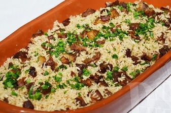 Corte a carne seca ou charque em pedacinhos. Lave até sair todo o sal. Coloque uma panela no fogo, com óleo, cebola e alho. Em seguida, despeje a carne e frite bem até dourar. Depois de fritat a carne, coloque o arroz e frite juntamente com a carne. Coloque água até cobrir o arroz. Tempere com pimentão, pimenta-do-reino, tomate, cebolinha verde e sal a gosto.Â
